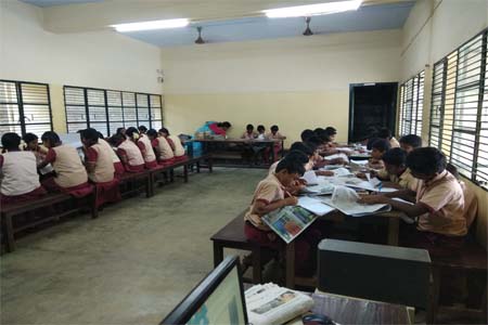 Daily activity for the students of class VI to Class IX starts with news paper reading. The daily newspaper provided to them enhance the reading habits. Being one of the unique activity it helps the students to be in touch with current affairs. Daily quiz on current affairs is also a part of the program.