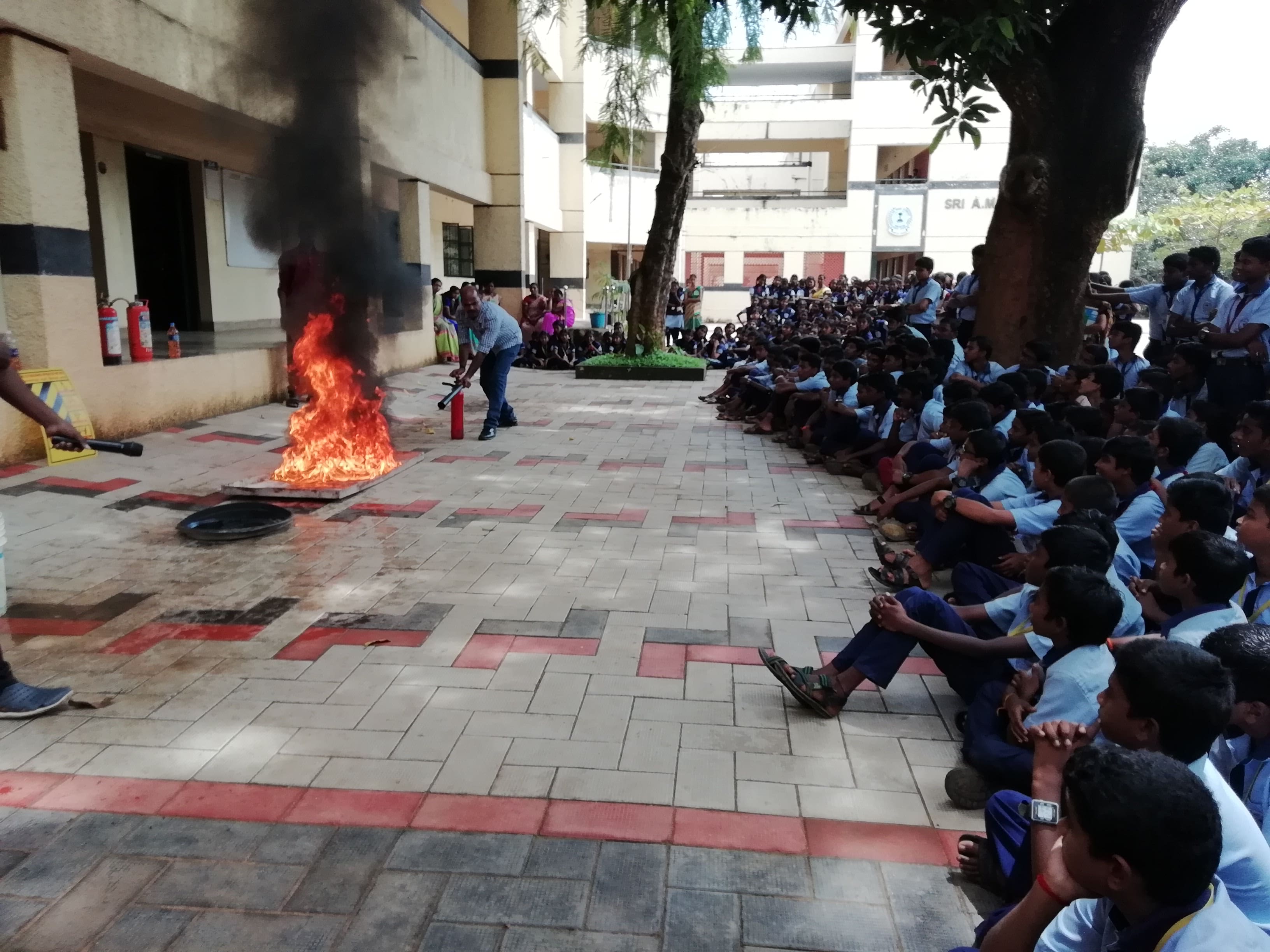 In order to keep everyone safe at all times from the risk of fire school is equipped with 23 fire extinguishers of high standard.These are serviced regularly to ensure they are in good working condition. Students and Staff members are given training on how to operate them in times of need.